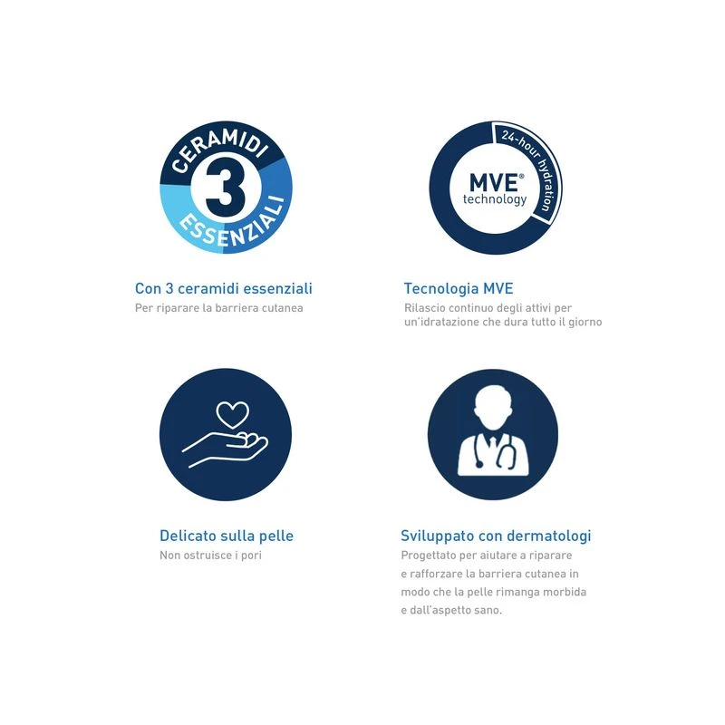 - Con 3 ceramidi essenziali per ripristinare la barriera naturale della pelle.