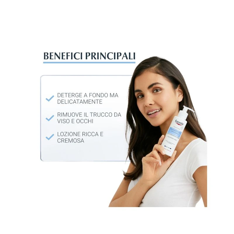 Descrizione e Modo d’Uso Eucerin DermatoClean Hyaluron Latte Detergente pelle secca 200ml