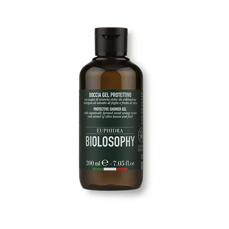 Doccia Gel protettivo: EuPhidra Biolosophy Doccia Gel Protettivo 200 ml. Detergente corpo extra delicato adatto alla pulizia quotidiana di tutti i tipi di pelle. L’estratto di foglie e frutto di olivo ha un effetto protettivo e antiossidante sulla pelle. L’acqua di arancia dolce regala freschezza e vitalità. Certificazione COSMOS ORGANIC: Fino al 99,9% di ingredienti di origine naturale. Formule biodegradabili. Materiale riciclato e riciclabile.