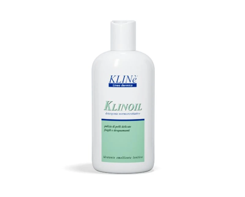 detergente ortodermico normorestitutivo ad alto potere idratante ed emolliente, a base di oli idrodispersibili e schiumogeni, indicato per la pulizia di pelli delicate, fragili e facilmente irritabili. KLINOIL è un dermofunzionale, coadiuvante nelle affezioni dermatologiche che si accompagnano a disagi locali, come prurito e desquamazione (dermatite atopica, ittiosi e psoriasi).