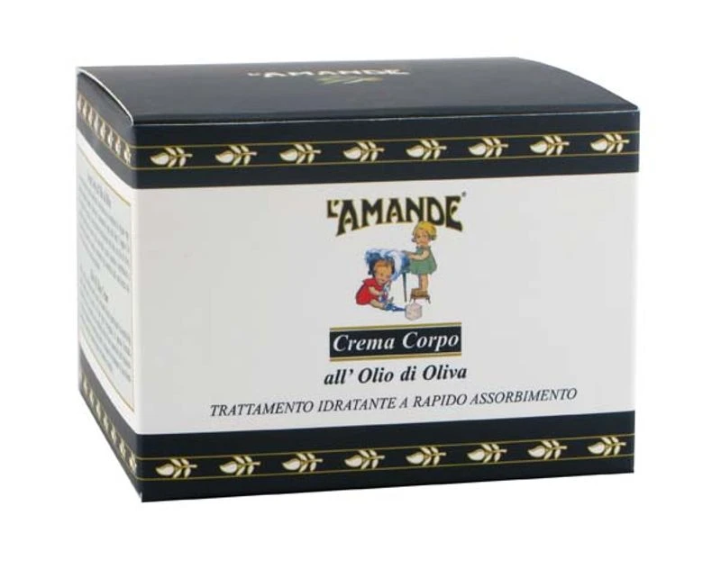 Crema corpo idratante a rapido assorbimento. Formulata con un complesso di origine vegetale particolarmente idratante è ideale per il trattamento di ogni pelle dopo il bagno o la doccia quotidiani. Non unge. La sua particolare formulazione arricchita con olio di oliva, bisabololo (principio attivo derivato dalla camomilla) e acido ialuronico contribuisce a mantenere la pelle morbida ed elastica, combattendo gli inestetismi della cute Senza coloranti. – CON ACIDO IALURONICO – CON BISABOLOLO – SENZA COLORANTI L’Amande Crema Corpo all’Olio di Oliva Vaso da 200ml