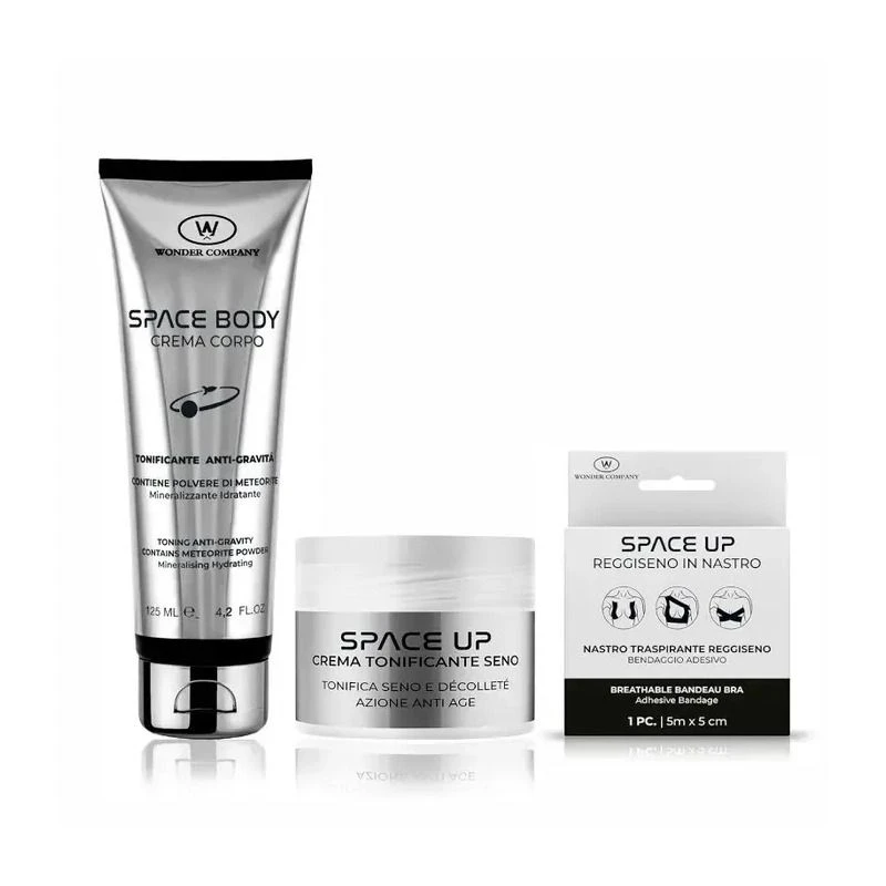 Abbina Space Body – crema corpo a Space Up – crema tonificante seno con Polvere di Meteorite ed attiva un’azione antigravità sinergica e tonificante risultati ancora più visibili.